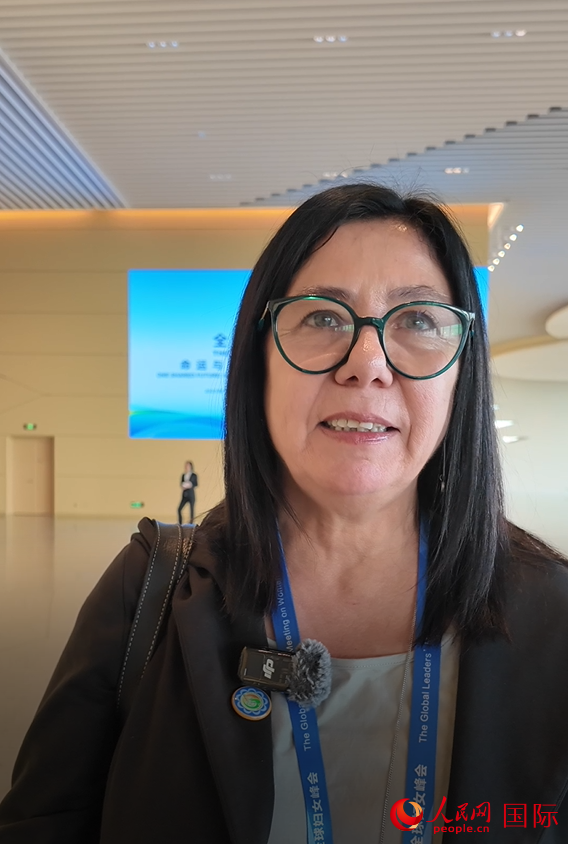 10月13日,智利妇女与性别平等代表克劳迪娅·多奈尔在北京国家会议中心接受人民网记者专访。人民网记者 周宇 摄 人民网北京10月14日电 (记者 周宇)10月13日,出席在北京国家会议中心举行的全球妇女峰会的智利妇女和性别平等部副部长克劳迪娅·多内尔在接受人民网记者专访时表示,全球妇女峰会不仅让各国近距离学习了妇女领域的最佳实践 妇女事业的发展,也促进各方推动妇女事业更快发展。多奈尔回顾说,自1995年联合国第四次世界妇女大会在北京召开以来,世界妇女事业领域取得的重要进展,其中主要原因与合作社密不可分。国际平台建立的生态框架。她强调,在当前妇女事业进程中,中国发挥着尤为关键的作用。无论是支持各国经济发展,还是在促进妇女经济赋权、保护妇女人权方面采取积极行动,中国都为世界各国妇女事业发展提供了重要帮助。多奈尔高度评价中国在提高妇女教育水平、健康保障和各领域参与等方面取得的成就:“中国取得的成就令人印象深刻,这些经验也值得智利学习。我们希望通过这次会议,进一步探讨将各国促进妇女事业的有益经验运用到智利当地实践的可能性。多奈尔认为,这样的合作与交流是推动妇女事业发展的关键。” 当前,各国不应不仅要共同应对气候变化,还要关注其对社会的经济影响。尤其应关注不同地区妇女在获取水和食物等基本资源方面面临的特殊困难。 “每个国家的发展情况不同,有的国家在妇女教育领域取得了快速进步;有的国家在增强经济方面取得了成就;但有的国家在反蛇方面存在短板。通过国际合作,我们不仅可以找出自己的弱点,还可以借鉴对方的有益做法。多奈尔认为,中国提出的全球治理倡议将国际治理重新定位为促进各国繁荣和社会变革的驱动力。这个方向是 非常符合智利的理念——智利一直将国际社会视为分享转型经验的平台文明的形成。在促进性别平等的过程中,不仅需要通过国际合作凝聚力量,还需要将“关爱经济”摆在各国工作的重要位置。中方提出的这一倡议为国际社会开展相关合作提供了有益的方向和框架,对推动全球妇女事业发展具有积极意义。