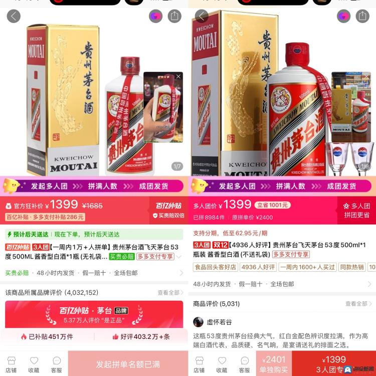 海报新闻记者秦文12月2日报道,酒业龙头单品飞天茅台再次在电商平台引起震动:多家拼多多门店同时发布53度500ml飞天茅台,团价“1399元/瓶”,直接跌破1499元。根据官方零售指导价,当天的一个链接显示“订购名额已满”;另一个仍可购买的链接则吸引了8900多份订单,而且还能下单,创下了年底酒类消费高峰期的“风暴”价格。电商平台“价格破局”,1399元/瓶的团价充斥屏幕,官方指导价或将成为“过去式”“1399元能买飞天茅台吗?” 12月2日,拼多多平台多家食品店同步开展飞天茅台团购活动。 53度500ml霏标有“买双倍价”、“百亿补贴”的天茅台,可供3人团购,价格1399元/瓶,并标有“48小时发货,无礼包,假货赔10%,限购1件”。 12月2日,记者发现,有多个链接以1399元/瓶的价格出售飞天茅台53度500ml。从平台页面可以看到,单独购买的2401元/瓶价格下降了1002元,也低于官方指导零售价1499元/瓶。这是各大电商平台首次以低于官方指导价的价格向公众展示飞天茅台。截至当日16:00,团购链接显示至少已完成8984单,部分门店显示“启动团购名额已满”。在相关产品评论中,消费者经常提到“惊喜的价格”和“齐全的产品”。当天,飞天茅台在其他电商平台的售价在1700元/瓶左右,从左到右分别是淘宝天猫平台、京东平台、抖音平台。除拼多多外,当天其他电商平台价格居高不下:京东自营瓶,同型号在天猫预购售价为1780元/瓶,百亿补贴官方渠道售价为1798元/瓶;部分抖音电商直播间报价在1700元/瓶左右,拼多多的“破价”并非孤例——11月下旬,平台暂时放出了1450元/瓶的团价,但这次却降价了。直接降至1399元,进一步拉低飞天茅台线上流通价格,线下终端价格在1800元/瓶左右,两者之间存在差价。目前线上线下价格已拉宽至400元。批发方面,自11月27日批发价跌破1600元/瓶以来,飞天茅台批发价持续下跌。据《酒酒行情》报道,12月2日,飞天茅台53度500ml原箱批发价较前一日下降15元/瓶,至1560元/瓶;散瓶价格也较前一日下跌15元,至1550元/瓶。据《酒酒价格》报价,12月2日,飞天茅台53度500ml原箱批发价报价为1560元/瓶;散装报价为1550元/瓶。当日,卷烟终端、超市线下零售价格均走高。价格从1750元/瓶到1800元/瓶不等,一线城市部分高端烟酒报价超过2000元/瓶,多数门店表示“库存充足”。例如当天,济南市历下区一家酒类专卖店的飞天茅台售价为1798元/瓶,北京望京一家烟酒店的飞天茅台售价为2178元/瓶。 “线上低价对线下产品影响很大,但也有局限性。”北京一家烟酒店老板表示,线下消费者看重“即时配送”和“保证正品”。 “虽然网上1399元/瓶的价格较低,但需要团购、等待发货,很多人担心电商渠道的货源,宁愿多花几百元到线下购买。”酒类卖家透露,拼多多此时的低价货源可能来自部分商家的“挫败”行为:“年底,一些商家会通过mga电商平台回笼资金,低价抛售量,但这是个人行为,而且主要的酒类价格也可能是来自于部分商家的‘挫败’行为。”N渠道不‘被牵着鼻子走’”元一瓶,直言“酒是真酒”。值得注意的是,当天飞天茅台的回收价格并没有受到电商低价的影响。北京、上海等地的烟酒回收商报价在1650-1680元/瓶,济南不少回收商报价在1600-1700元/瓶,这这意味着,如果买家以1399元/瓶的价格购买正品飞天茅台,出售时可以赚250多元。但由于回收市场的波动,即使货后回收价格是否会下降,也不建议这样做。 “如果到时候货出现问题,或者行情进一步下跌,则得不偿失。”一位回收商表示。飞天茅台1399元/瓶的售价,既是电商平台终端促销的“引流工具”,也体现了商家对飞天茅台的重视。飞天茅台渠道价格差异:线上靠低价获取流量,线下靠经验保证专业,而批发渠道则保持“行业价格底线”。对于普通消费者来说,1399元/瓶的低价虽然有吸引力,但需要注意核实货源资质;对于行业来说,电商平台频繁的“断断续续”可能会进一步将飞天茅台的价格体系转向“线上线下”。离线双轨系统。”