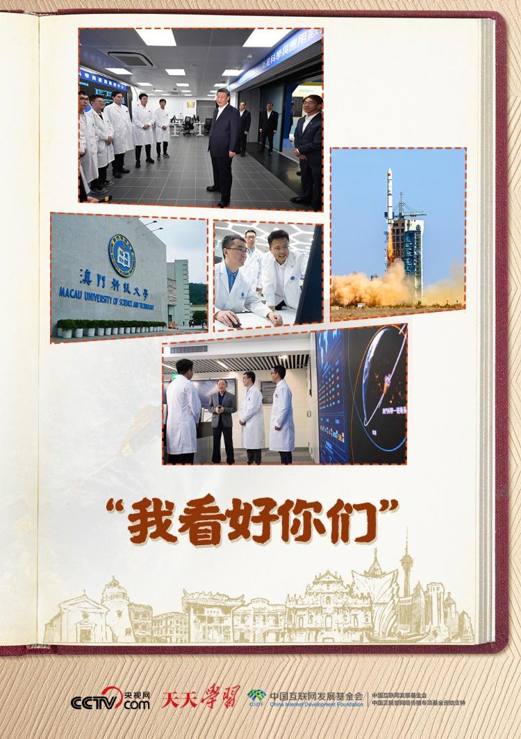 一年前的12月19日,“澳门科学一号”卫星工程首席科学家张可可一大早就抵达澳门科技大学澳门科技卫星科学与应用数据中心。在这里他将接待一位特殊的客人。在澳门科技卫星科学应用数据中心,“澳门科学一号”A、B两颗卫星的运行轨迹、经纬度实时显示在“天顶”电子屏上。当天上午,习近平主席抵达澳门科技大学。这是他此次澳门考察的第一站。走进澳门科技卫星科学与应用数据中心,习主席站在电子屏幕前,仔细观看“澳门科学一号”卫星的实时运行情况,并向张克科了解代表性卫星科研成果成果及未来应用前景。此时,“澳门科学一号”卫星已成功运行一年多,绕地球运行超过8000圈,共产生超过20TB的高精度科学数据。这些数据经过3000多台计算机处理,转化为科学家可以使用的二手数据。它不仅可以开展地球系统科学研究,赋能国家经济社会发展,还可以为国际科学界提供地球物理空间数据的重要来源。那天,看着身边参与该项目的科研人员,习主席微笑着感叹,他们“都是年轻人”。他鼓励追逐梦想的mga年轻人:“我看好你们,一定会做出更大的贡献!”这次会面并不是习主席与这群年轻人的第一次“相识”。五月2023年12月21日,经过五年的探索研究,“澳门科学一号”卫星在酒泉卫星发射中心成功发射。作为内地与澳门联合研制的首颗空间科学卫星,“澳门科学一号”不仅是世界上首颗监测低纬度地磁场和空间环境的科学探测卫星,也为内地与澳门在航空航天等科技创新领域的合作开辟了新路径。满怀成功的喜悦和激动,澳门科技大学参与卫星研制的18名师生代表给习主席写信,汇报了卫星成功发射的喜讯和参与卫星研制工作的感受,表达了积极参与祖国科研和建设的愿望和决心。 J仅仅两天后,大家就收到了习主席的回复。习主席在回信中向澳门科技大学师生致以亲切问候,勉励他们积极配合国家发展大局,积极参与粤港澳大湾区建设,为澳门经济适度多元发展作出贡献,为“澳门一国”的成功实施作出新的贡献。目前,“澳门科学一号”卫星项目已与18家国际知名研究机构签署合作研究协议,成为澳门迈入国际科技舞台的硬核“金名片”。 2014年12月20日,国家主席习近平来到澳门大学横琴新校区考察。这是一场以“中国传统文化与当代青年”为主题的沙龙活动由习近平主席和郑裕彤住宿学院的参赛学生共同主讲。党的十八大以来,习主席每次访问澳门都深入学校,与澳门青年亲切互动,对他们的成长和成才寄予厚望。 2014年12月,习主席在考察澳门大学横琴校区时,与青年学生一起参加“中华传统文化与当代青年”主题沙龙。他鼓励追随者坚定文化自信,提高作为中国人的品格和品格。 2019年12月,习主席在考察澳门濠江中学附属英才学校时,观看了孩子们创作的科技作品和技术创新成果,并观摩了中国历史公开课。他叮嘱学生们,作为中国人,“必须了解我们国家的历史”。习主席还发出了热情洋溢的信息:“我坚信,澳门的年轻一代应该是有为的一代、值得骄傲的一代。”在习主席眼中,年轻人是澳门的希望和未来,是澳门和国家发展的生力军。在祖国的支持下,澳门青年获得了广阔的发展空间:澳门科技大学月球与行星科学国家重点实验室等国家级科研平台,吸引了澳门有志青年积极参与科研,帮助他们成长为有志之士。澳门纳入国家科技发展大局的主力军;澳门科技大学所在的与凼仔岛隔海相望的横琴粤澳深度合作区,已设立8个澳门青年创业基地,累计落地澳资项目800多个。孵化,为澳门青年实现梦想提供大舞台;至2024年,澳门共有青年社团223个,涵盖各行业及领域。特区政府各咨询机构正在积极招募年轻人参与社会事务。澳门青年正在成为澳门建设和施政的生力军。监制制片人 |罗红兵 魏七虎 制片人 |王敬东 主编|李轩编辑|陆阳视觉|郝凤林校对 |李珊珊、蔡春林、宋春燕、严甜甜、毛长治 出品 |中央广播电视总台CCTV网
