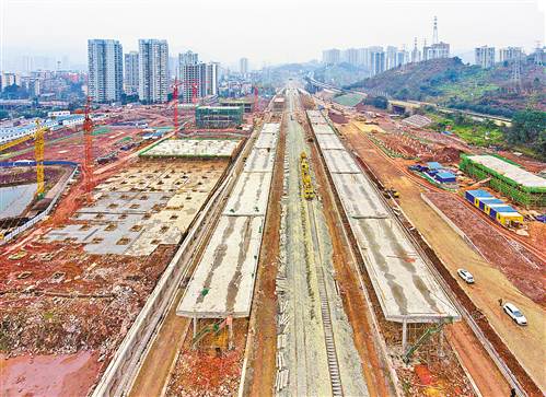 2月10日,綦江城区,渝黔铁路新线綦江东站已初具规模。目前,渝黔铁路新线綦江东站主体工程已完工,进入附属设施施工阶段,预计6月结束。据了解,渝黔铁路新线将在今年底建成通车,届时重庆到贵阳火车通行时间将缩短至两小时左右。记者 万难 摄